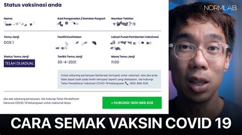 Semakan status temu janji vaksin dapat dilakukan dengan beberapa cara. Anda dapat memeriksa status temu janji vaksin Anda secara online, melalui telepon, atau melalui aplikasi seluler. Pastikan untuk memiliki informasi pribadi Anda, seperti nomor identitas diri (NRIC) atau nomor paspor, ketika Anda melakukan semakan status temu janji vaksin.